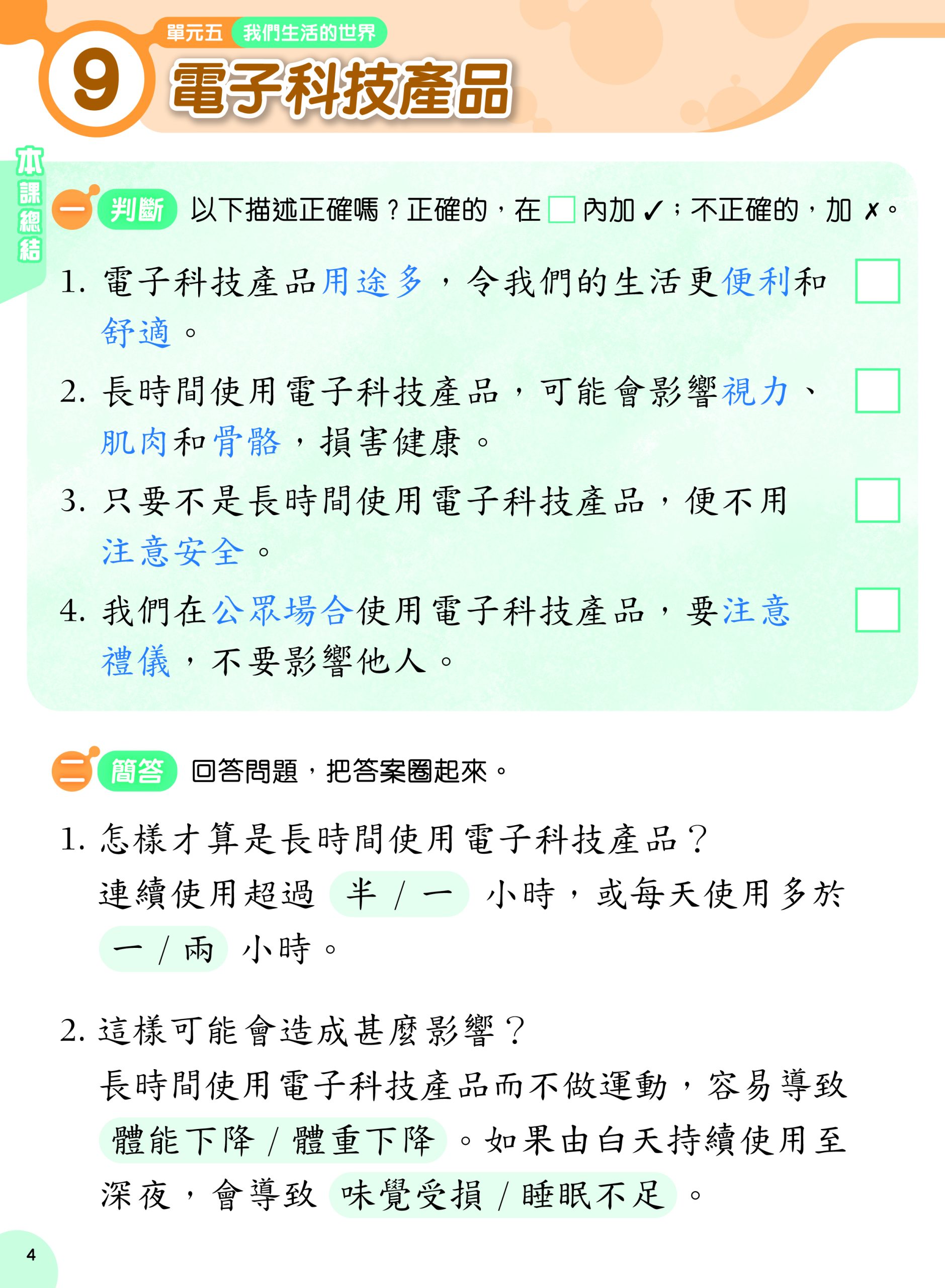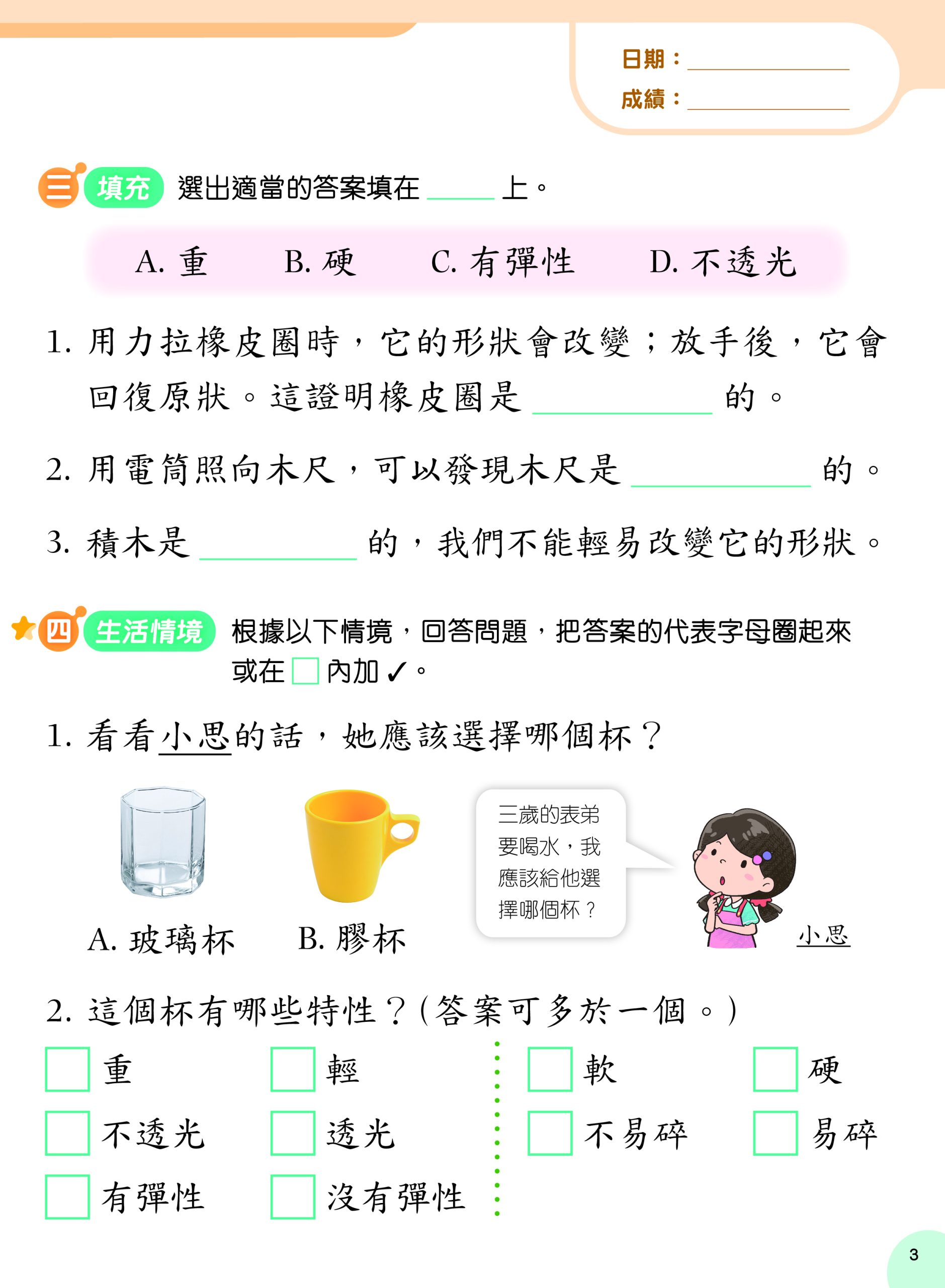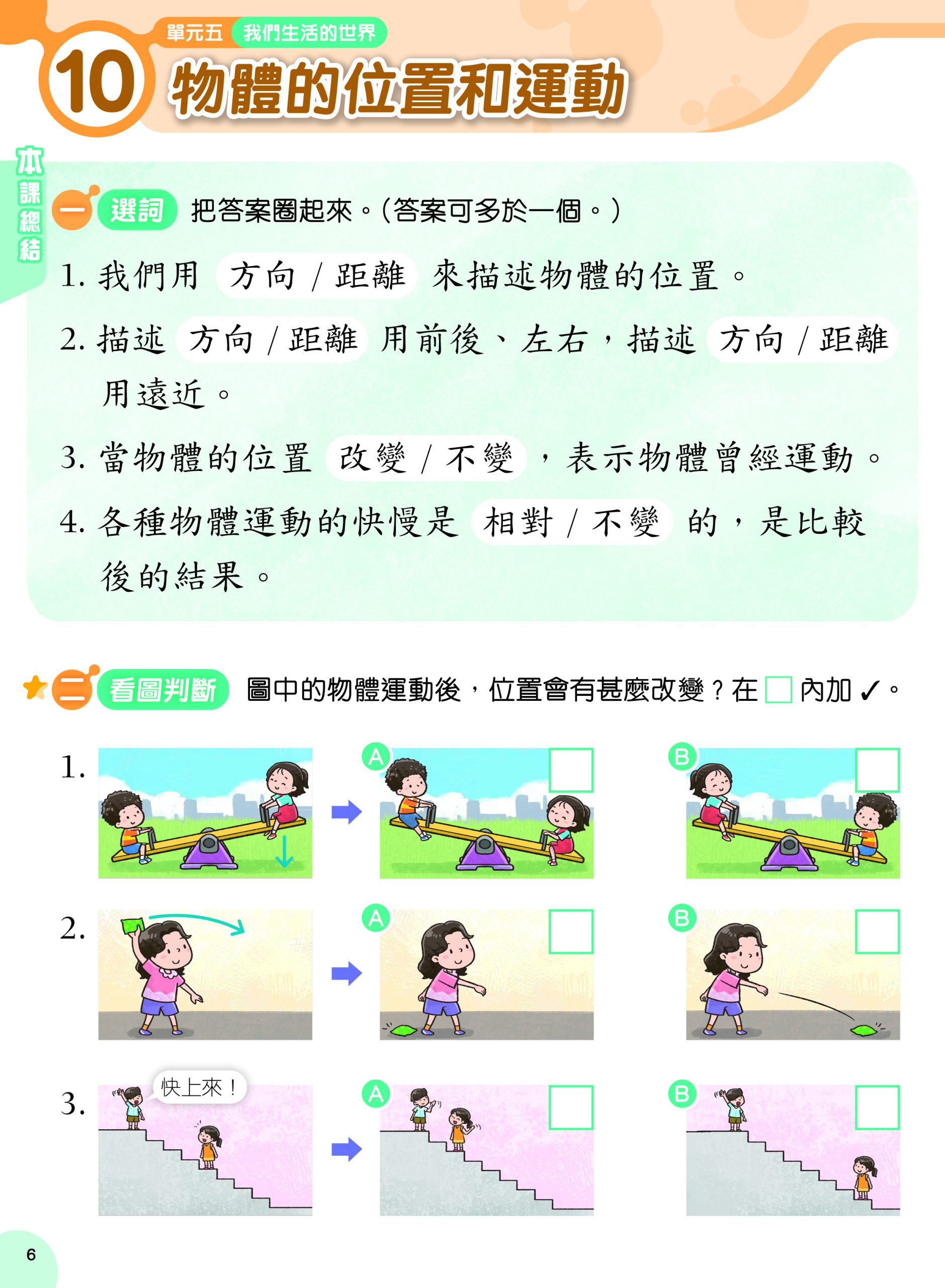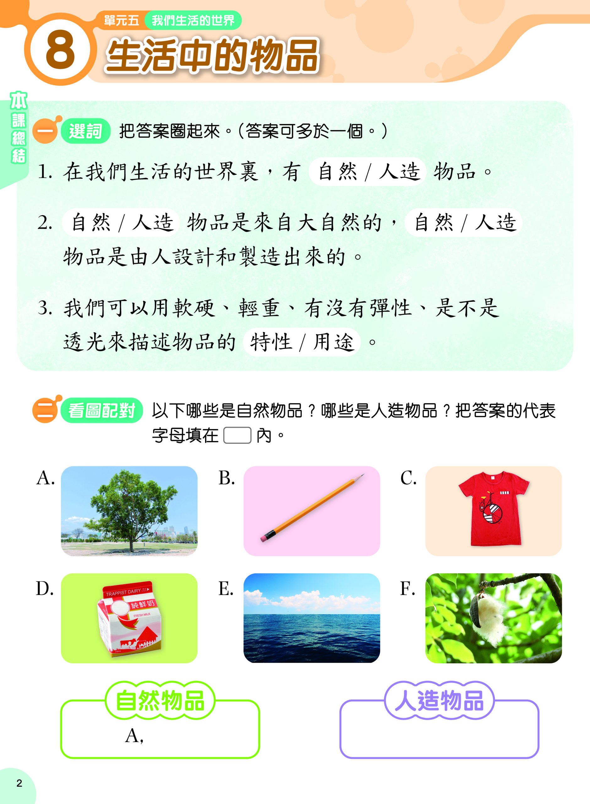 本作業緊密配合《科學新領域》課本各主題的學習目標而編寫,除了讓學生複習和鞏固課堂所學外,也可作為每課和每冊的評估。另附自學配套,讓學生在家自學。