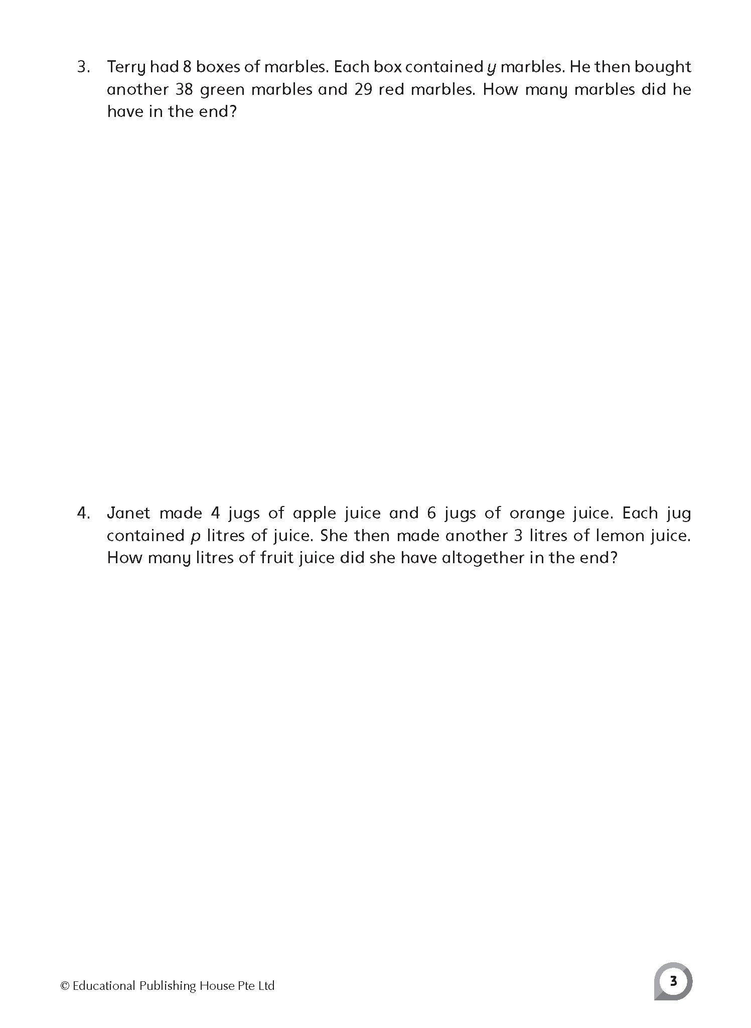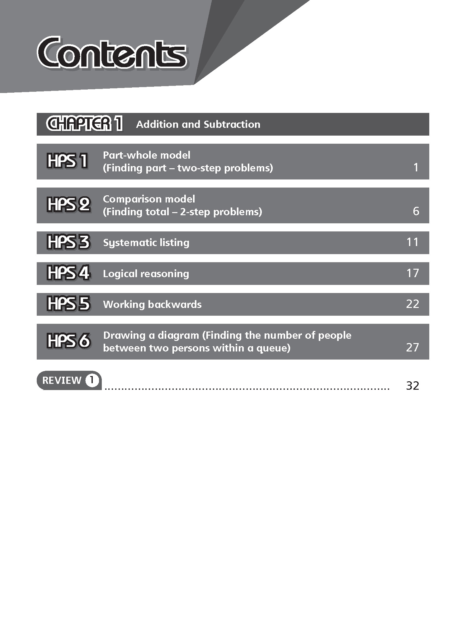 New Problem-solving Processes in Mathematics is a series of Primary 1–6 Mathematics books that provides comprehensive practices in routine and challenging word problems. Pupils are exposed to the various essential types of problem-solving heuristics identified in the routine practices in each topic. The guided examples that employ the four-step problem-solving approach and the scaffolded practice questions in the routine practices facilitate structured drilling exercises. Through ample drilling exercises in the routine practices, pupils will thus be ready to take on challenging word problems in the review sets.