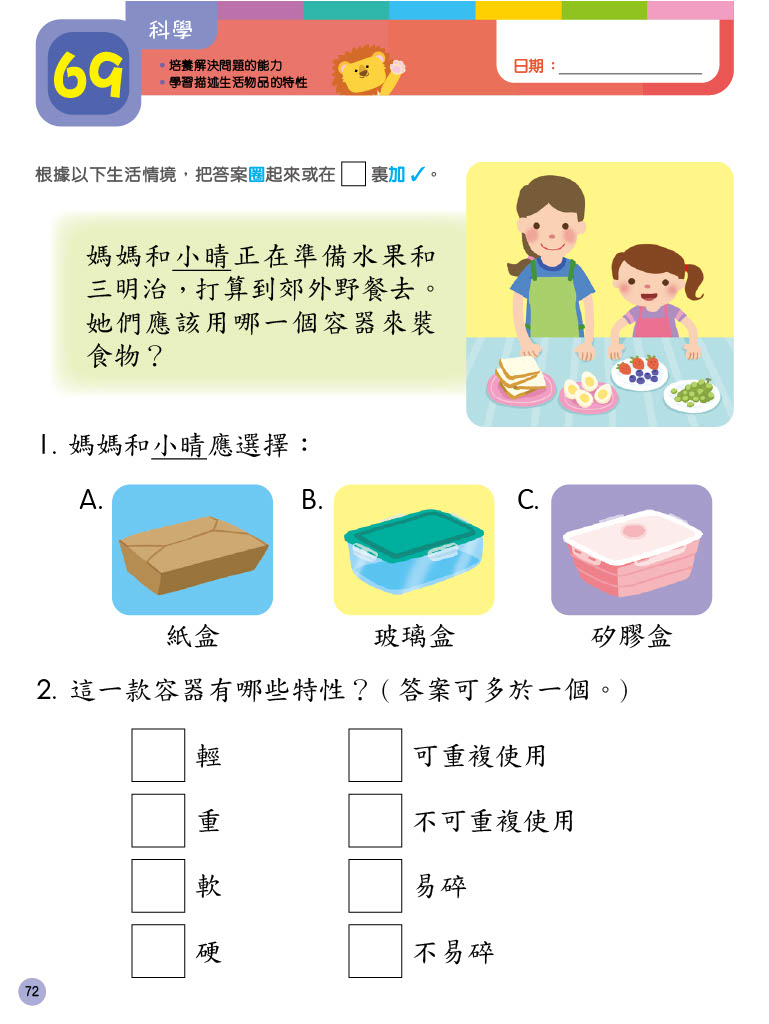 • 各科練習涵蓋小一常見題型,重點集中孩子感困難的範疇,幫助孩子預早適應和學習。
