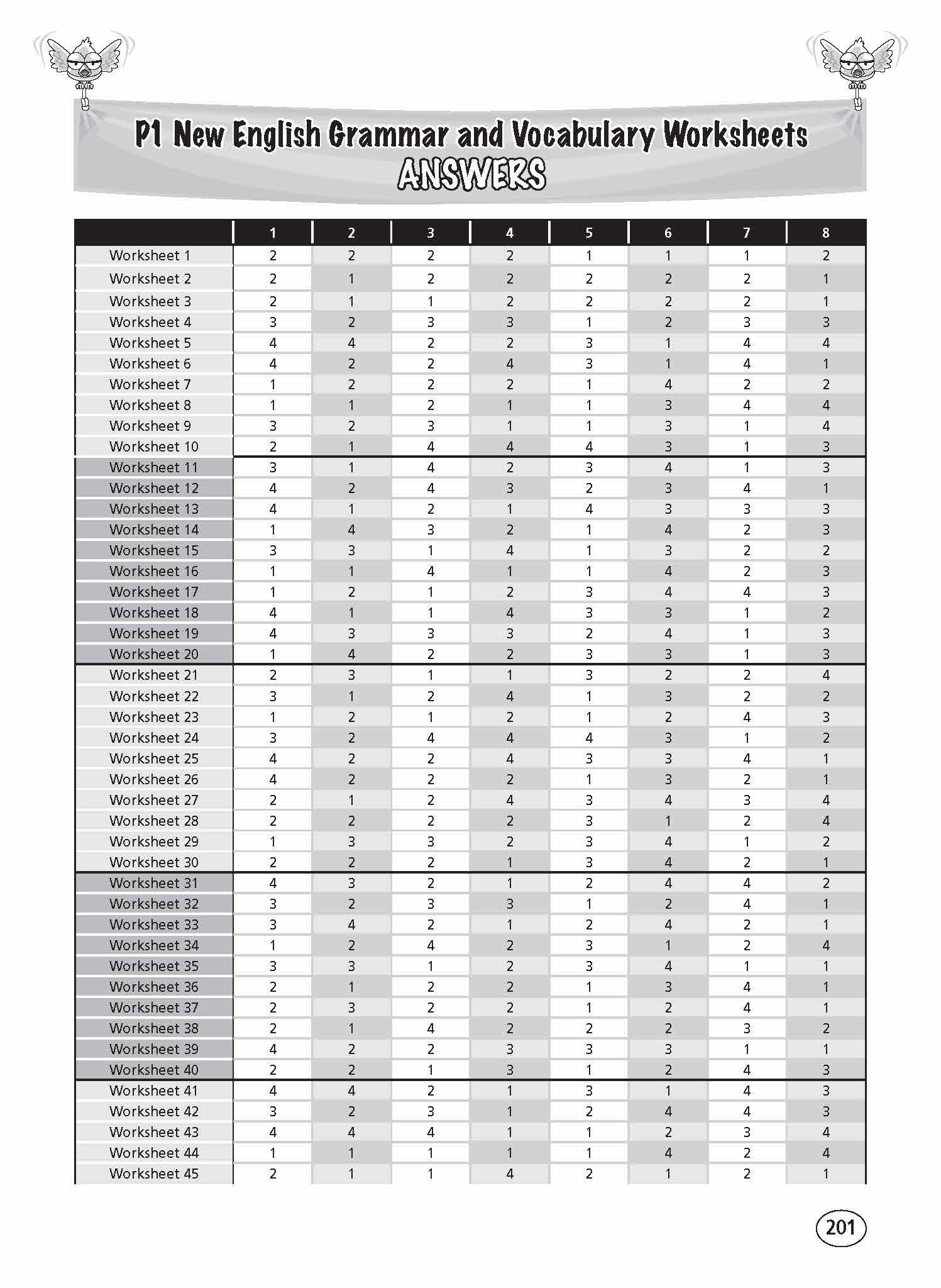 NEW English Grammar & Vocabulary Worksheets series closely follows the English syllabus issued by the Ministry ofEducation, and is specially designed toprovide a good start for developinggrammar and vocabulary skills in pupils. This book comprises 200 worksheets forintensive practice, each containing 8 MCQ items. The questions exposepupils to the respective elements of grammar and a great variety of words. This will help them gain greater confidence in tackling tests and examinations.