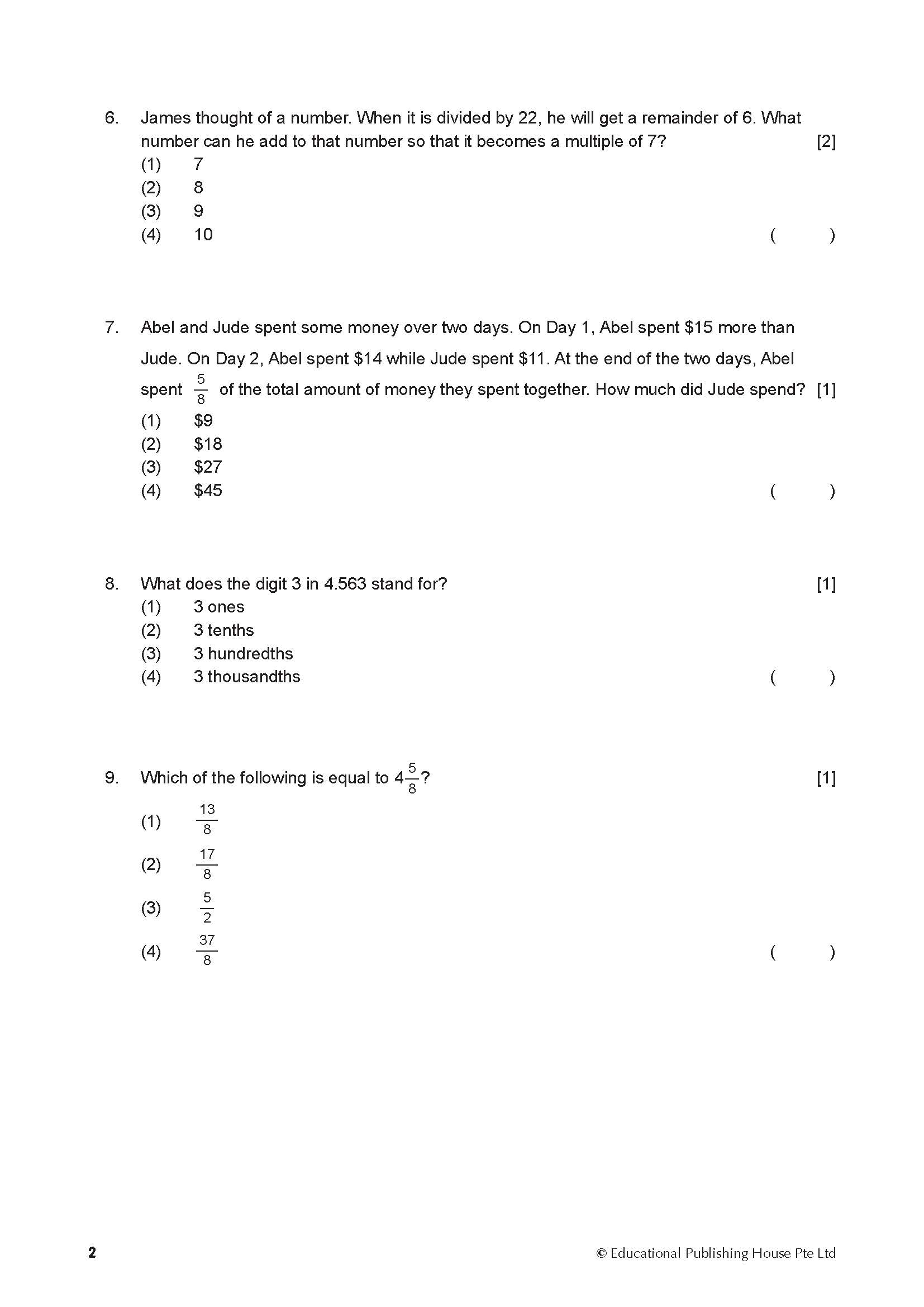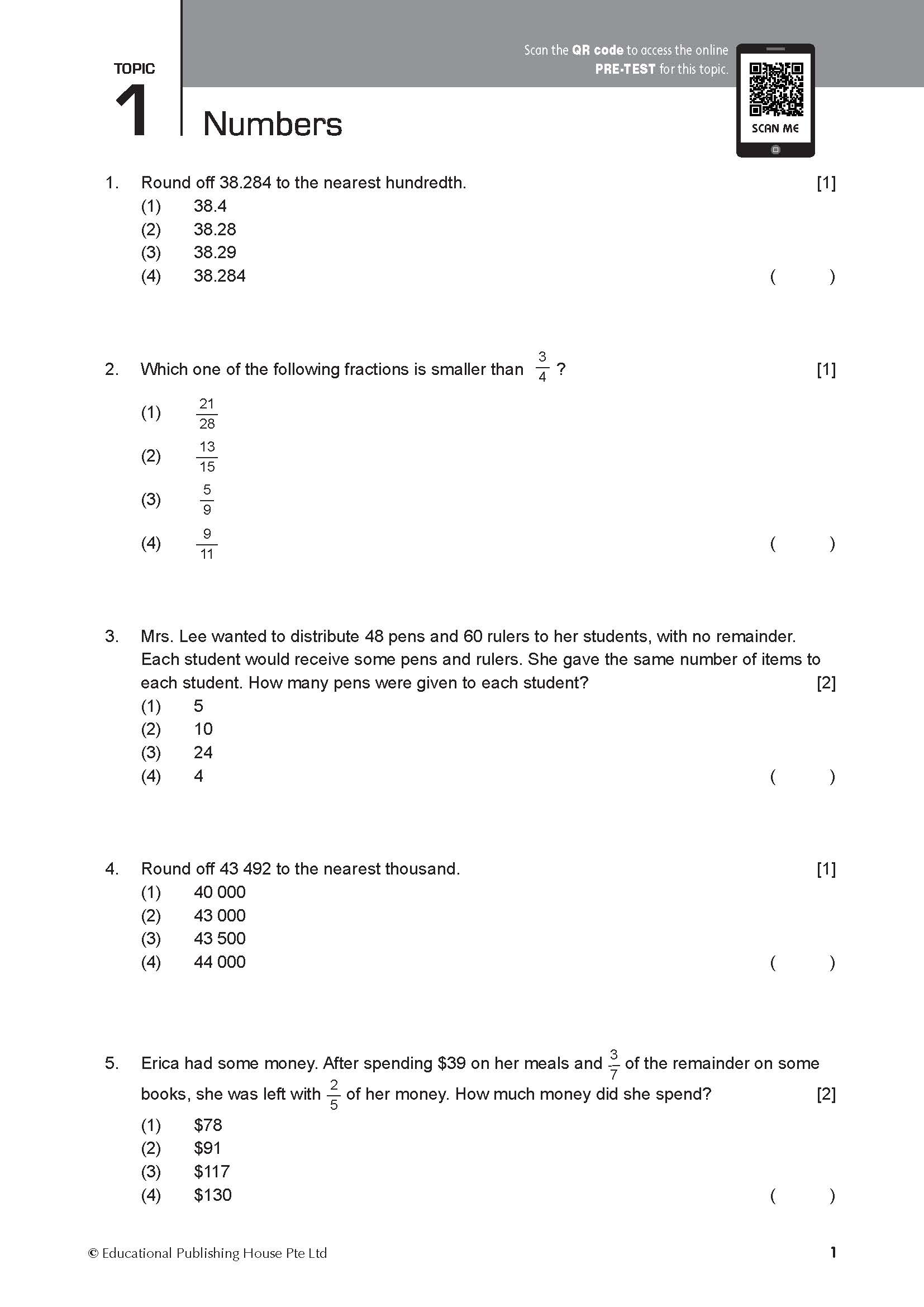 Attempting these questions exposes pupils to alternative contexts and/or phrasings and helps them focus on the concepts and skills tested in the most recent Mathematics PSLE papers.