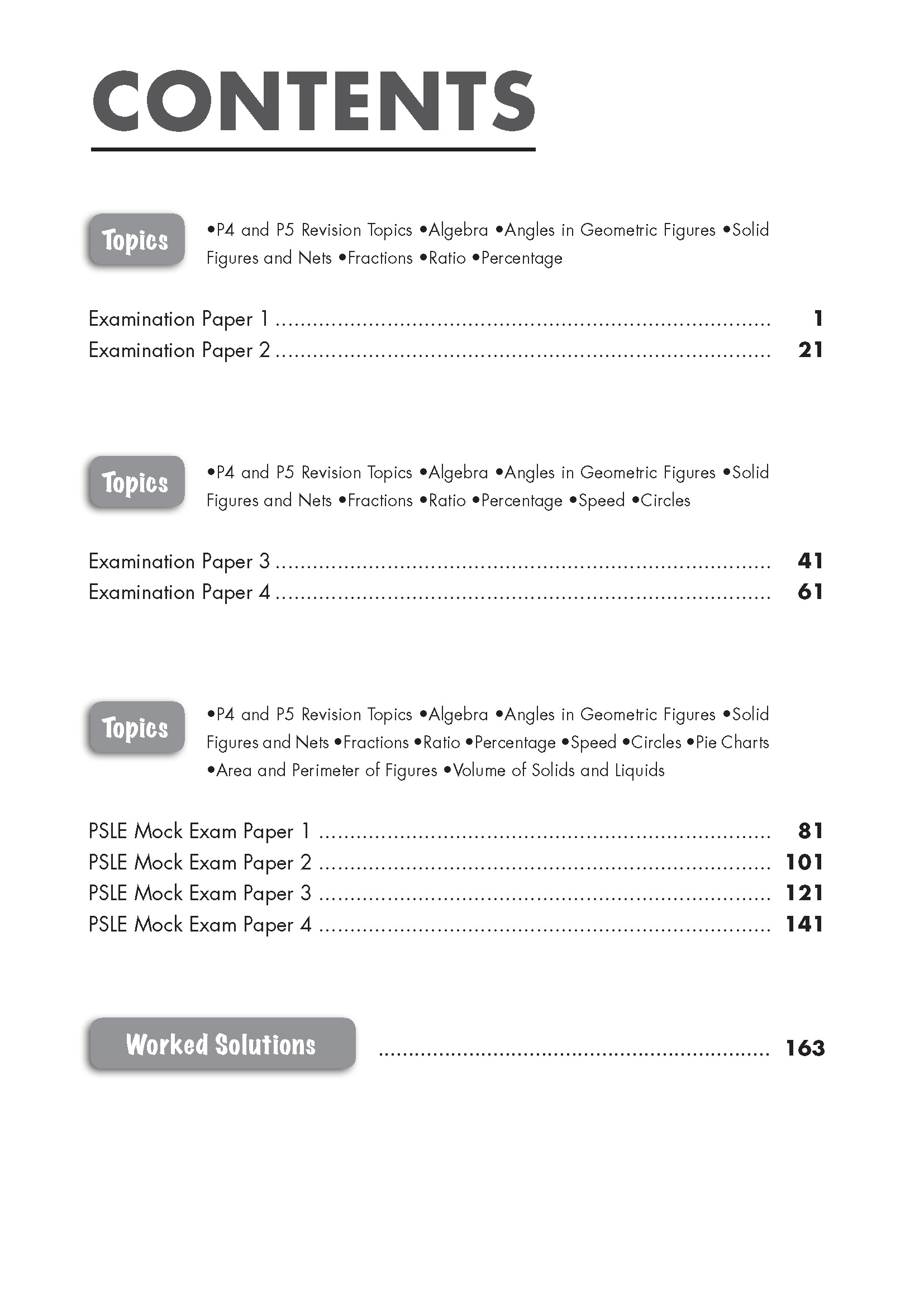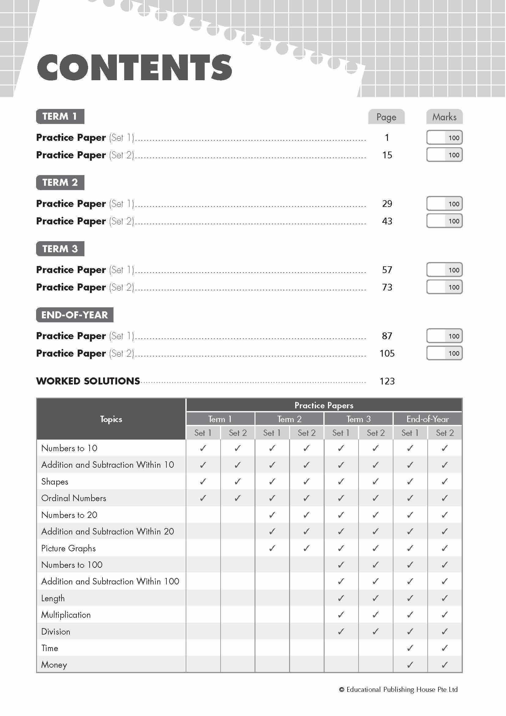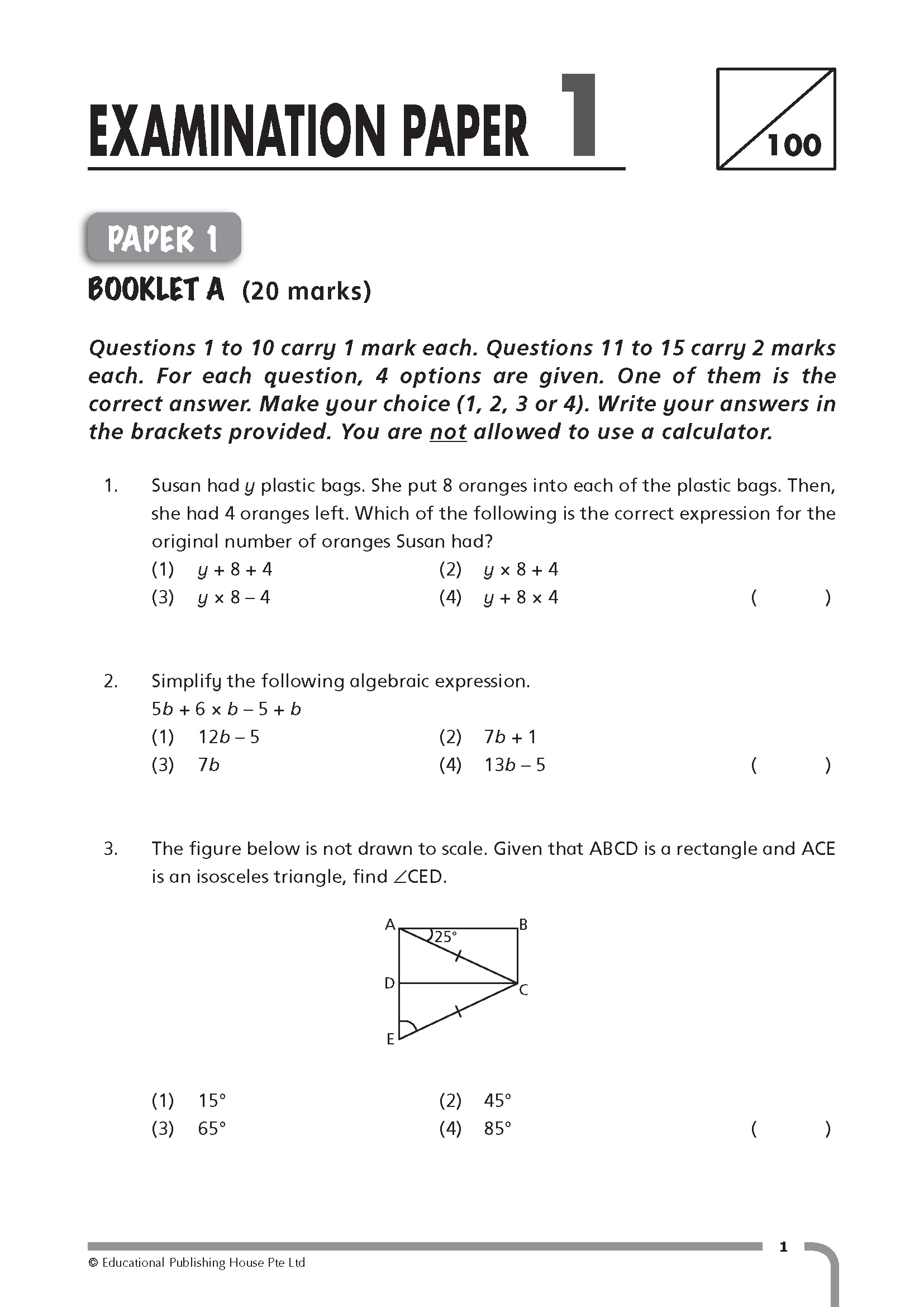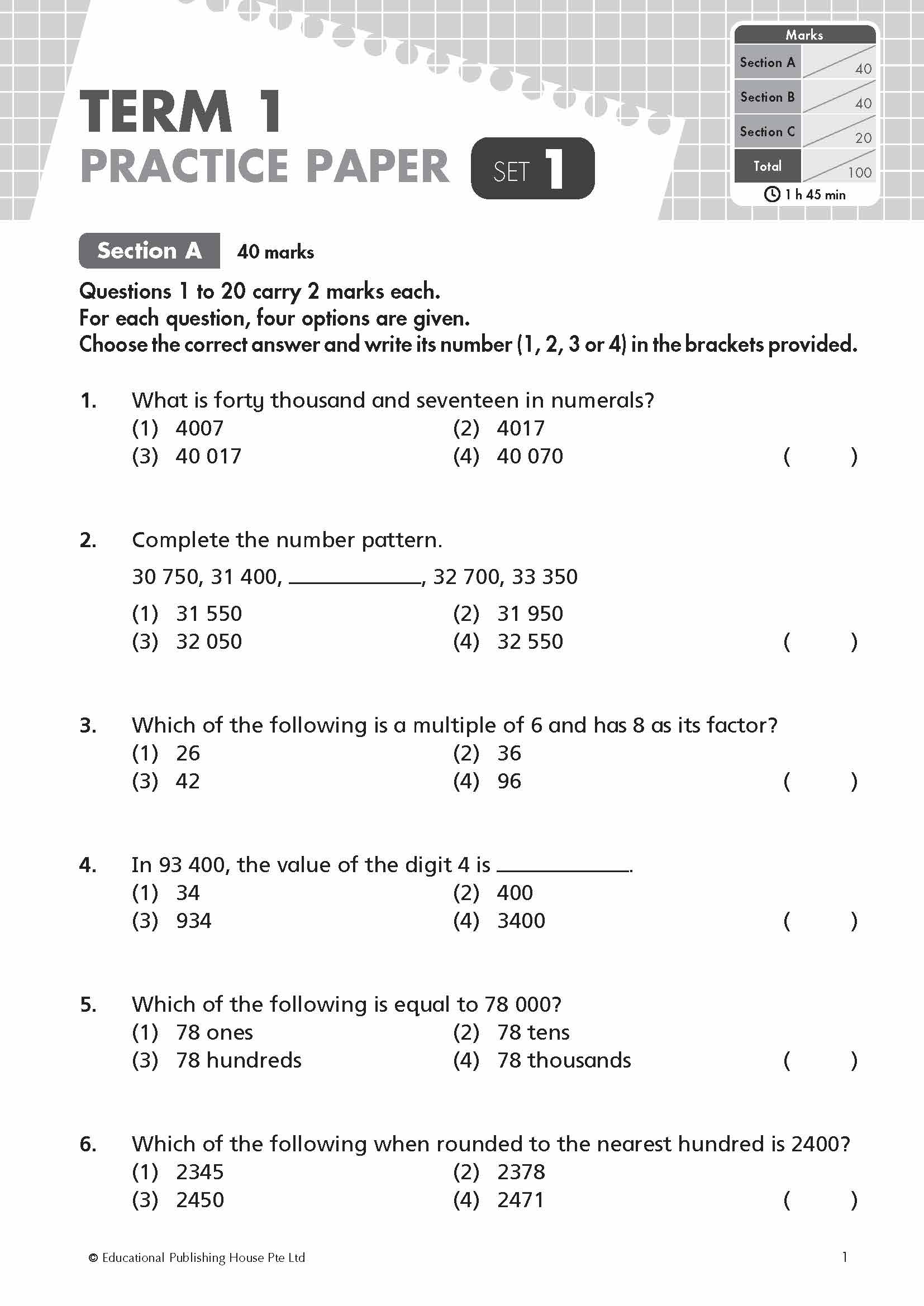 TOP Mathematics Practice Papers is a six-book series written to prepare pupils for their school assessments and examinations. Each book in the series comprises 8 term practice papers which are pitched at a level of difficulty comparable to the standard of top primary schools in Singapore. Each term paper consists of questions covering current and previous chapters. This series provides pupils with ample practice on a wide range of intermediate to challenging problems.